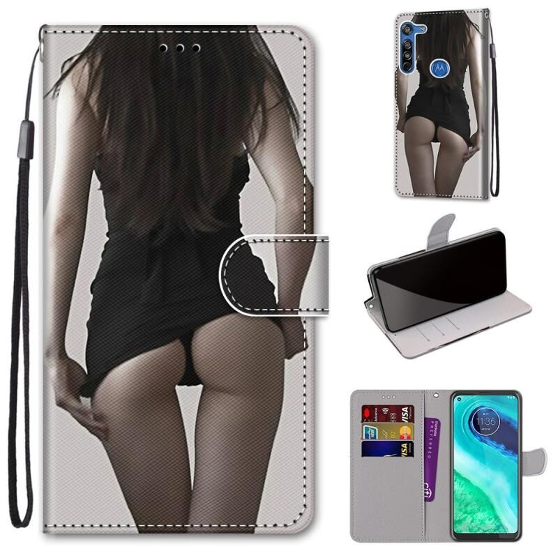 Θήκη για Motorola Moto G8 με έγχρωμο σχέδιο, υφή σταυρού, οριζόντιο άνοιγμα, από δερματίνη PU με βάση, θήκες για κάρτες, πορτοφόλι & λουρί (ανυψωτικό).