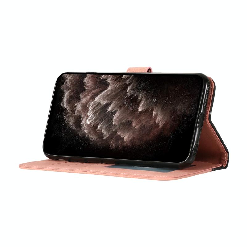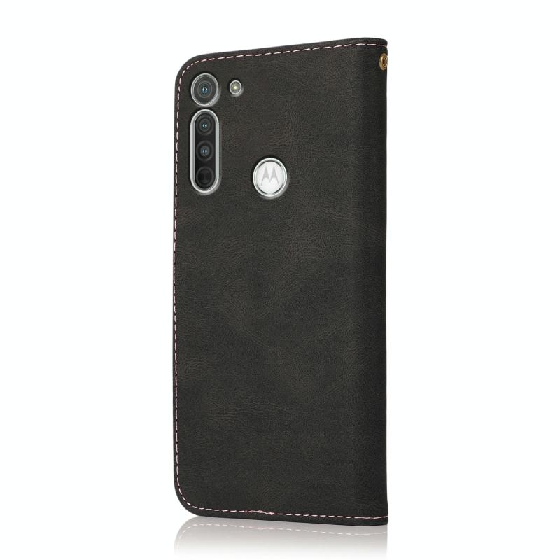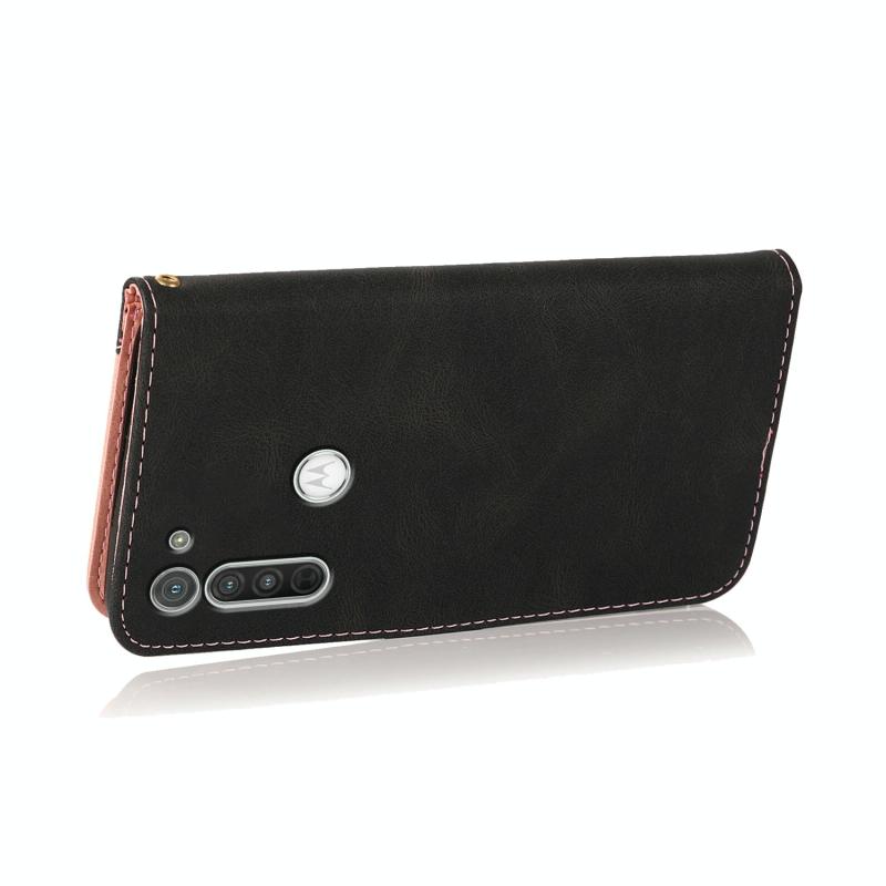 Θήκη τηλεφώνου δερμάτινη με διχρωμία ραφής για Motorola Moto G8 (Μαύρο Ροζ Χρυσό)