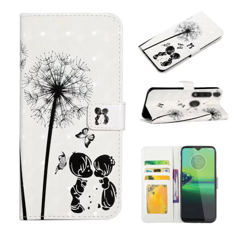 For Motorola Moto G8 Play Oil Embossed 3D Drawing Leather Phone Case(Couple Dandelion)