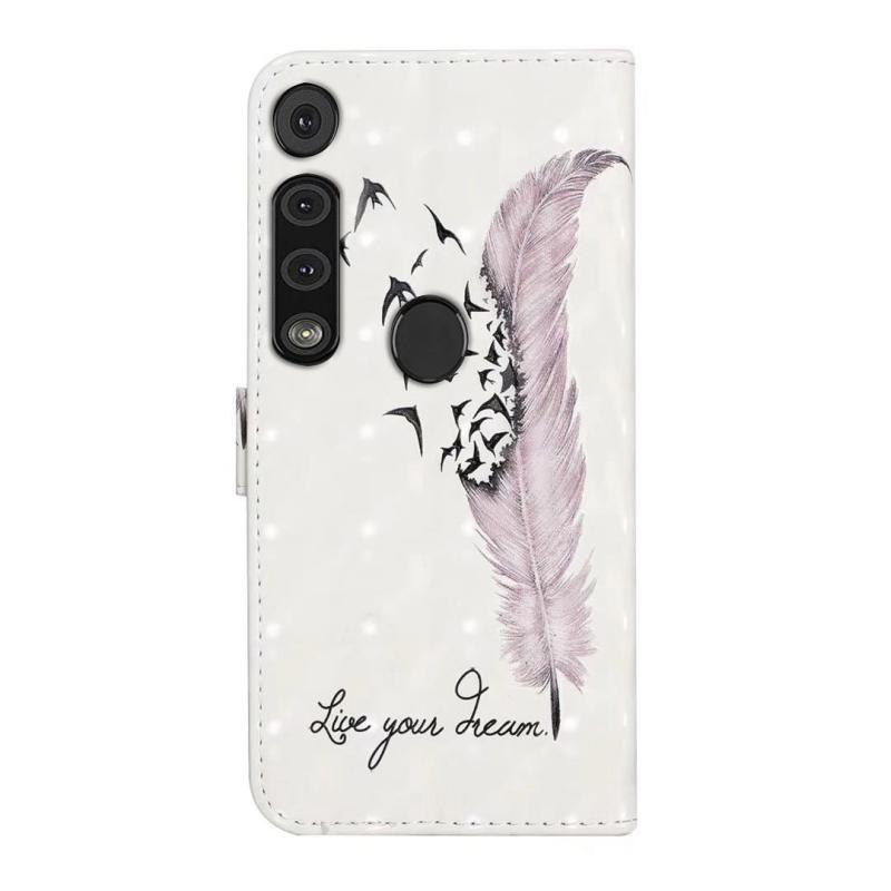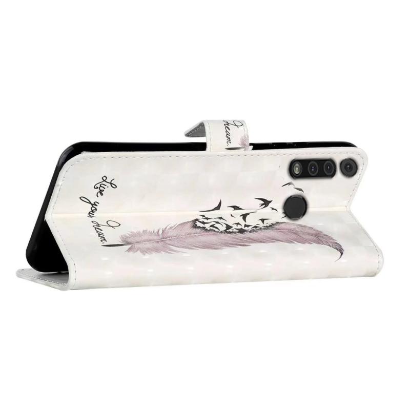 For Motorola Moto G8 Play Oil Embossed 3D Drawing Leather Phone Case(Feather)