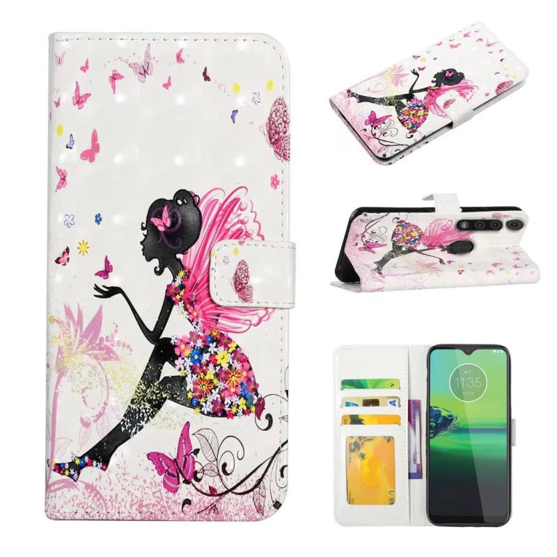 For Motorola Moto G8 Play Oil Embossed 3D Drawing Leather Phone Case(Flower Fairy)