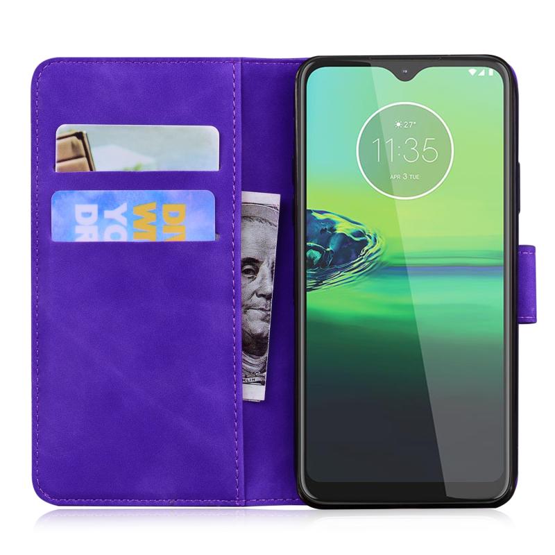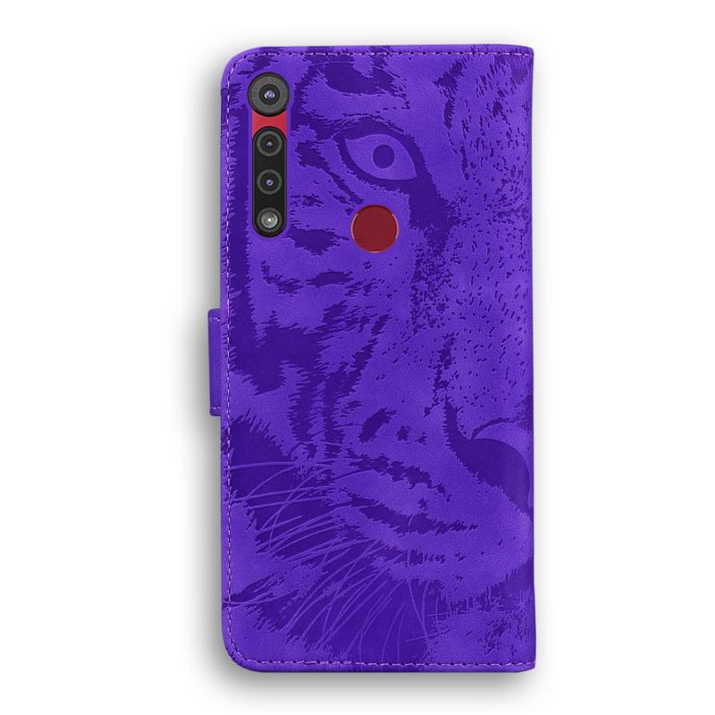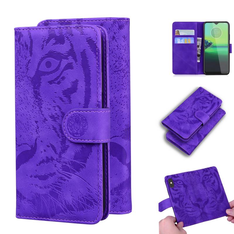 For Motorola Moto G8 Play / One Macro Tiger Embossing Pattern Horizontal Flip Leather Case with Holder & Card Slots & Wallet(Purple)