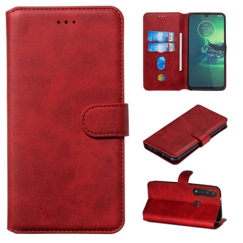 Για το Motorola Moto G8 Plus Κλασική θήκη από δέρμα μοσχαριού με οριζόντια αναδιπλούμενη PU θήκη, με υποδοχές για κάρτες και πορτοφόλι (κόκκινο)