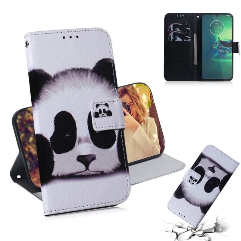 Θήκη δέρματος οριζόντιας αναδίπλωσης με μαγνητική έλξη και συνδυαστικό σχέδιο για Motorola Moto G8 Plus, με βάση στήριξης, θήκη για κάρτες & πορτοφόλι (Panda)