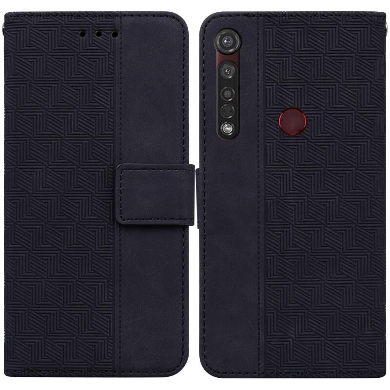 Για Motorola Moto G8 Plus Γεωμετρική ανάγλυφη δερμάτινη θήκη τηλεφώνου (Μαύρο)