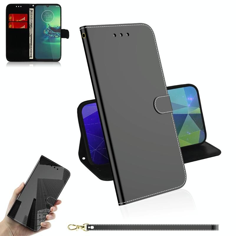 Για Motorola Moto G8 Plus Καθρέφτης-όπως μαγνητική έλξη οριζόντια Flip δερμάτινη θήκη με κορδόνι, Υποστήριξη Holder & υποδοχή για κάρτες & πορτοφόλι (Μαύρο)