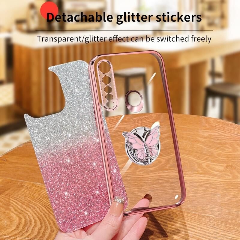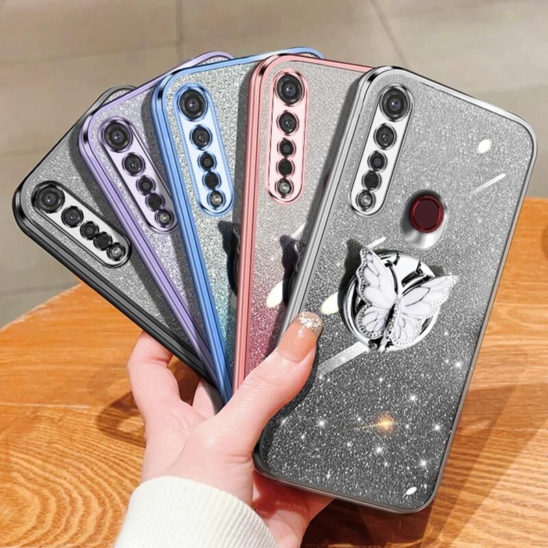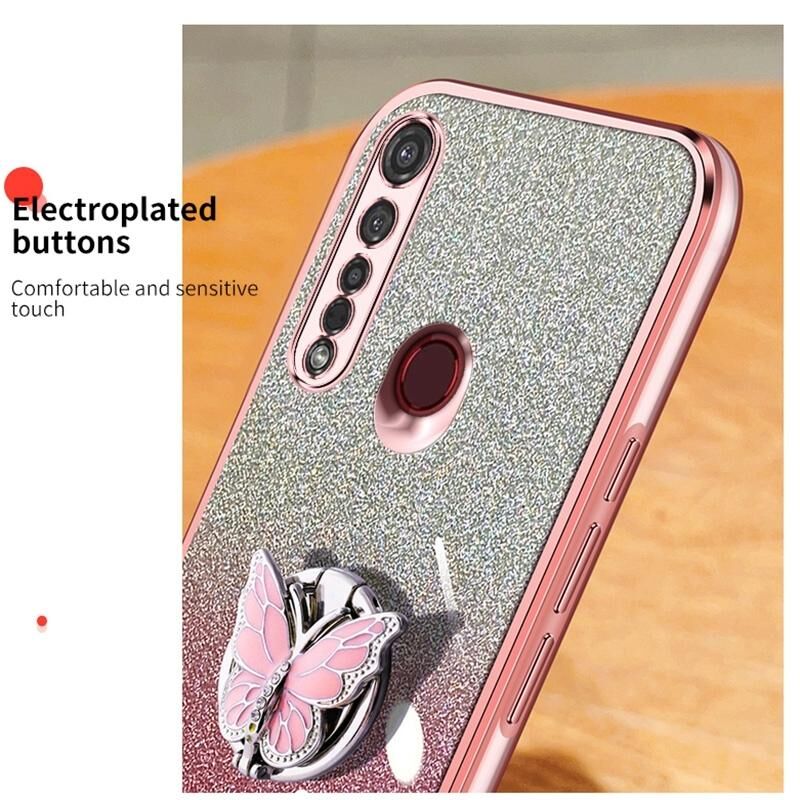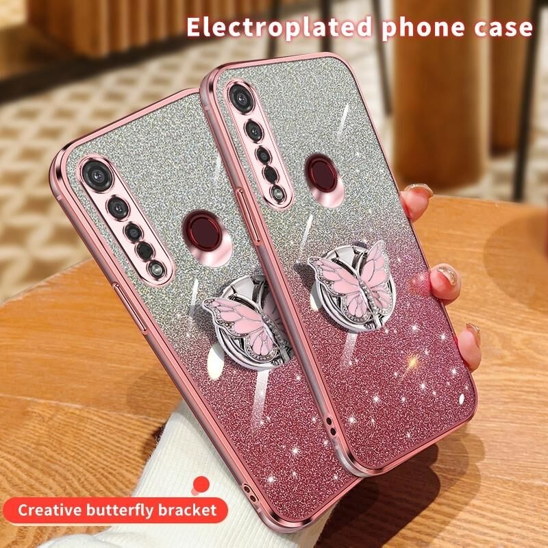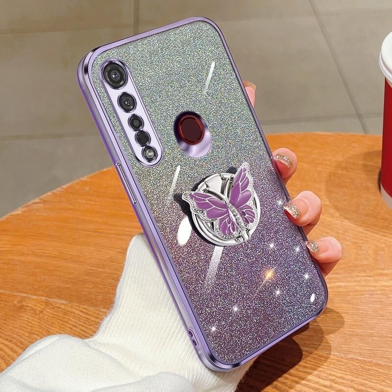 Για Motorola Moto G8 Plus Επιμεταλλωμένο διαβάθμιση Glitter πεταλούδα κάτοχος TPU υπόθεση τηλεφώνου (Μωβ)