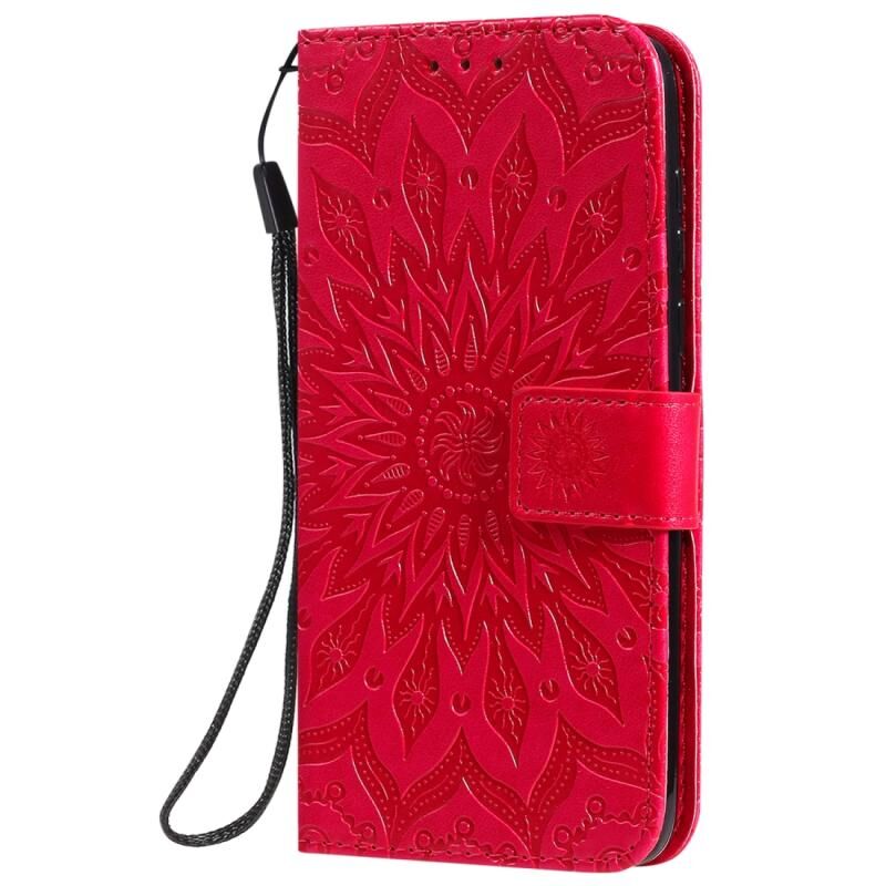Θήκη για Motorola MOTO G8 Plus με εκτυπωμένο σχέδιο ηλιοτρόπιου, οριζόντια αναδιπλούμενη από δερματίνη PU με βάση στήριξης, θήκες για κάρτες, πορτοφόλι & λουρί (Ροζ)