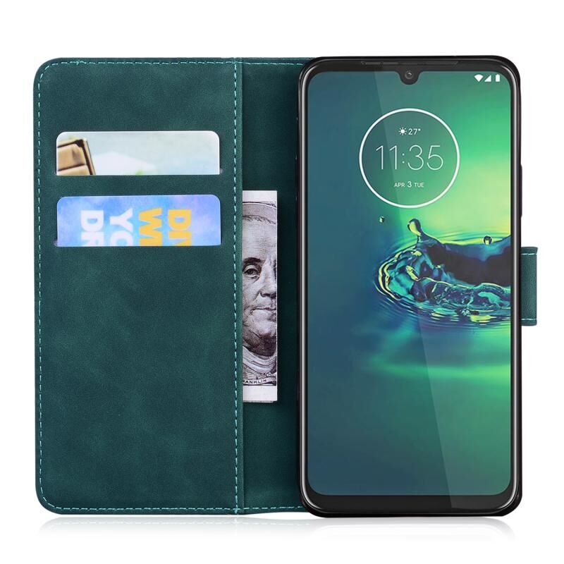 Θήκη δέρματος οριζόντιας αναδίπλωσης με ανάγλυφο μοτίβο τίγρης για Motorola Moto G8 Plus με βάση & υποδοχές καρτών & πορτοφόλι (Μαύρο)