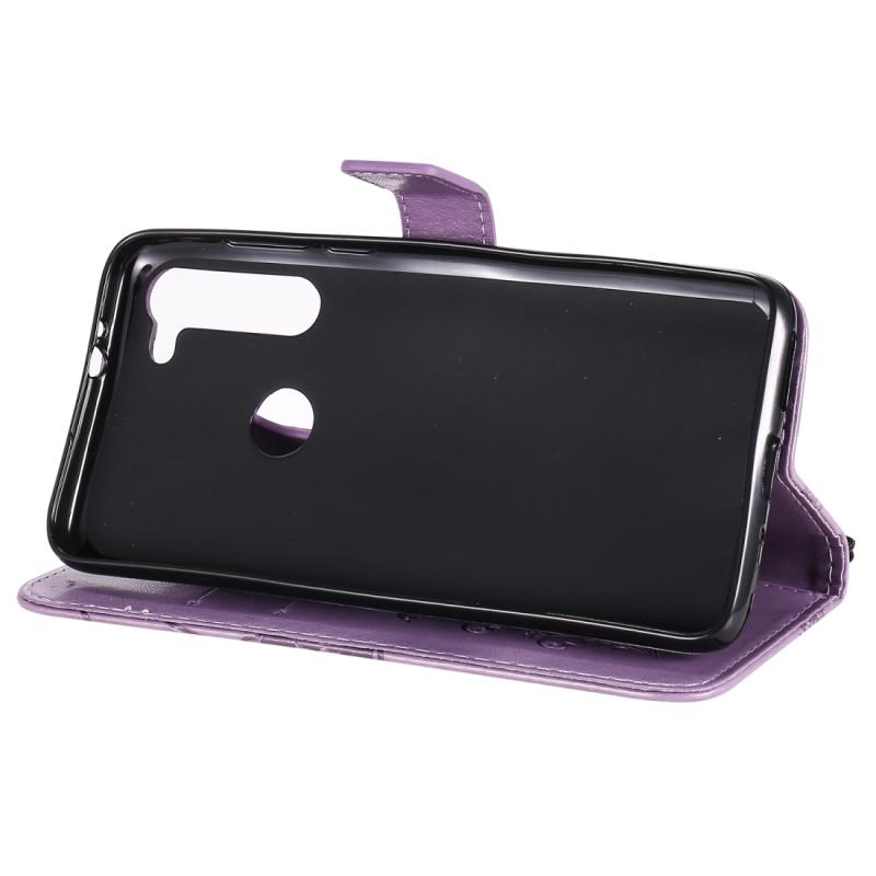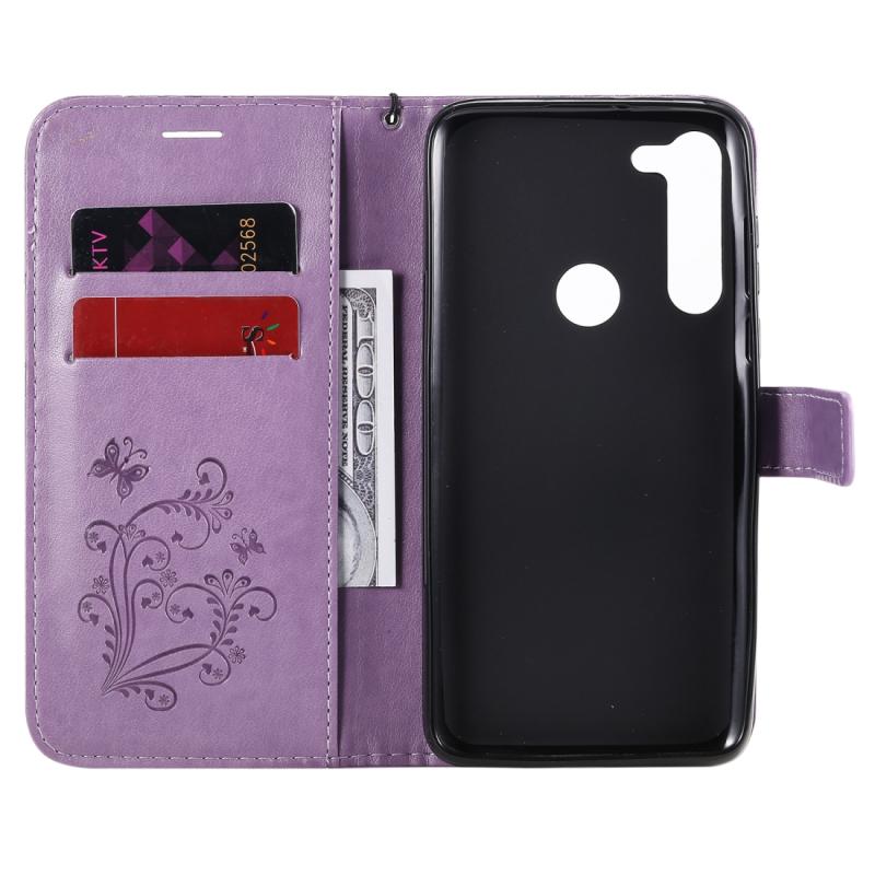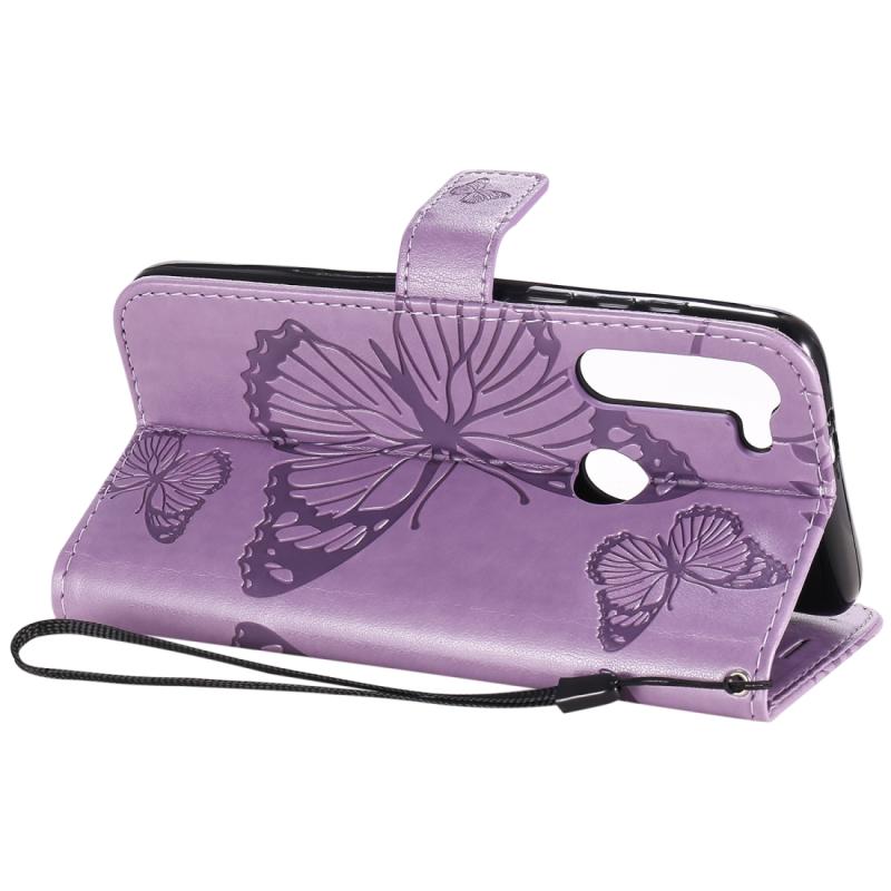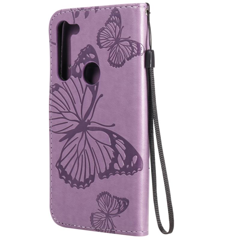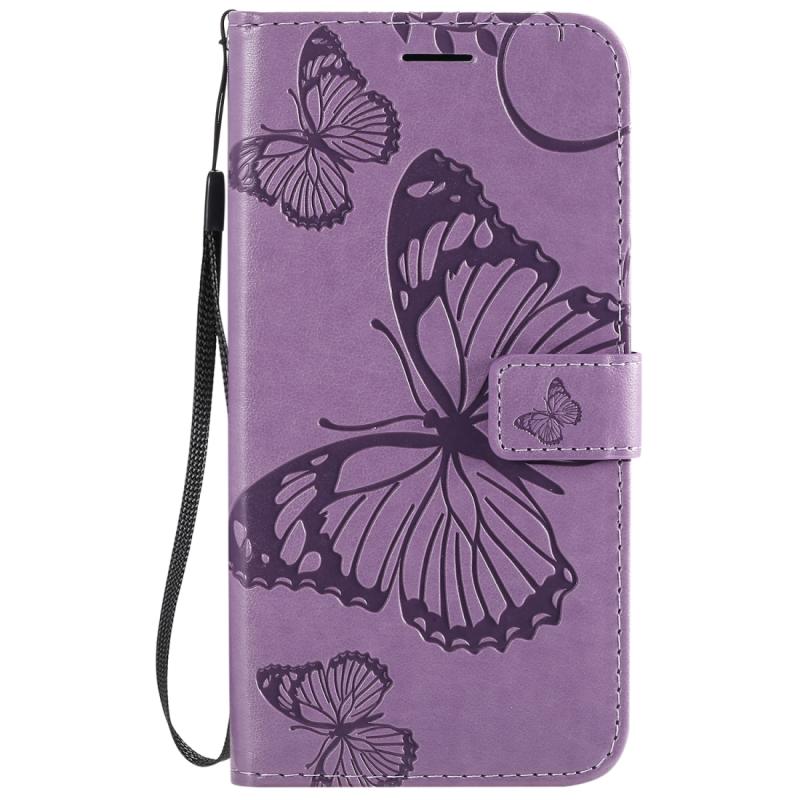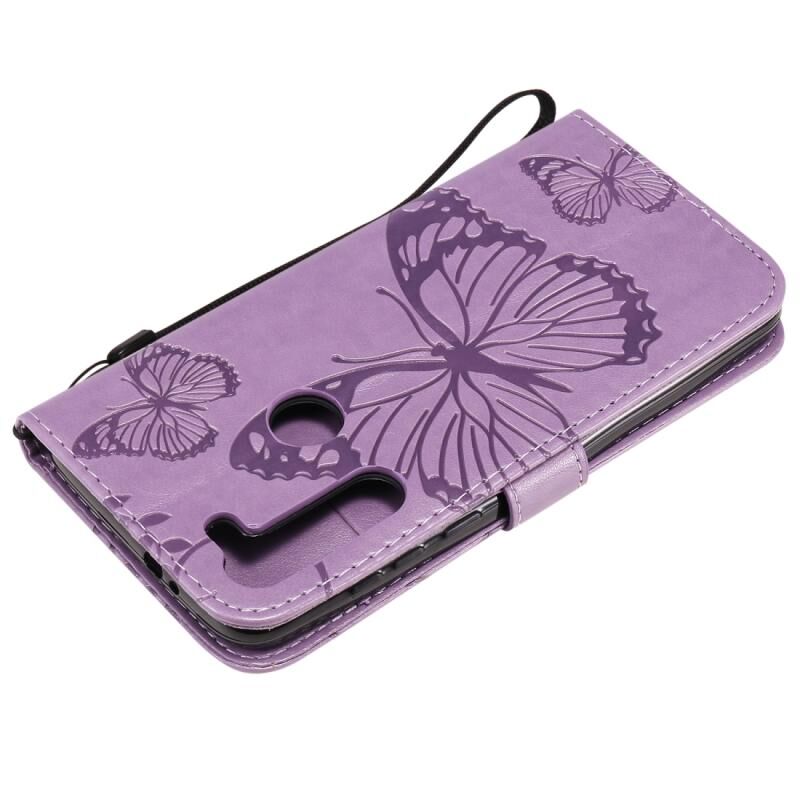 Θήκη δέρματος οριζόντιας αναδίπλωσης για Motorola Moto G8 Power με ανάγλυφο σχέδιο 3D πεταλούδων, με βάση, θήκη καρτών, πορτοφόλι και κορδόνι (Μωβ)