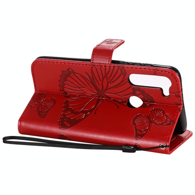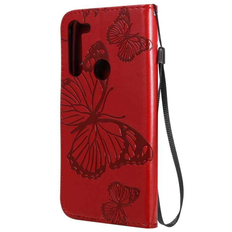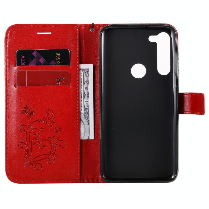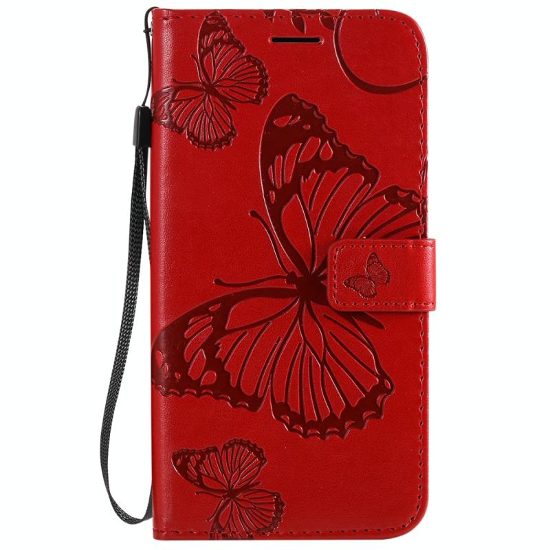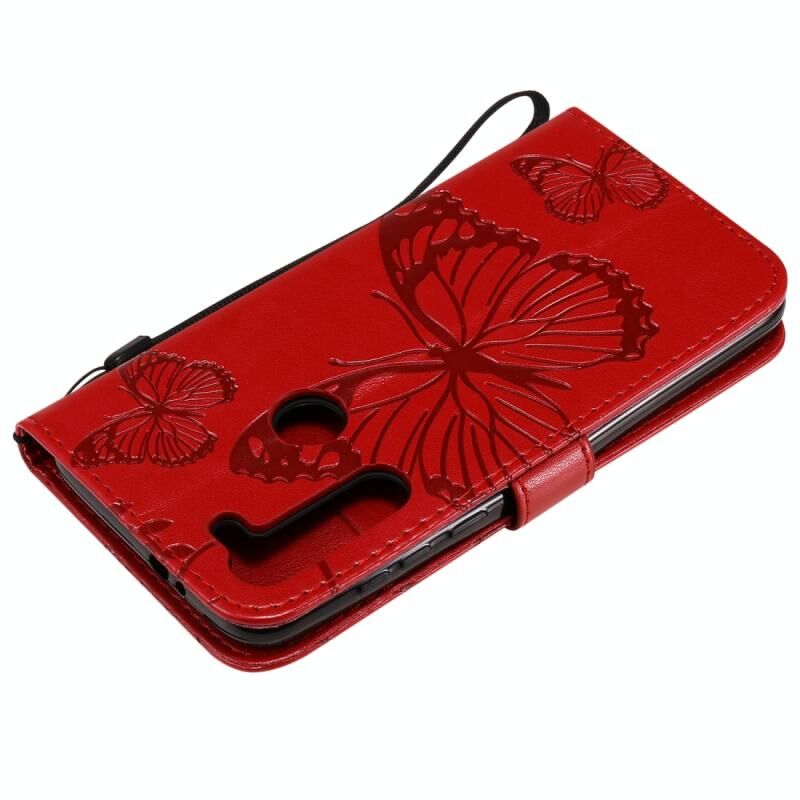 Θήκη δέρματος οριζόντιας αναδίπλωσης για Motorola Moto G8 Power με ανάγλυφο σχέδιο 3D πεταλούδων, με βάση, θήκη καρτών, πορτοφόλι και κορδόνι (Χρυσό Ρόδινο). (Κόκκινο)