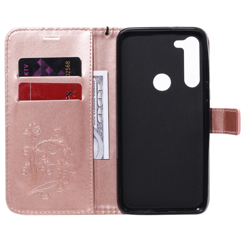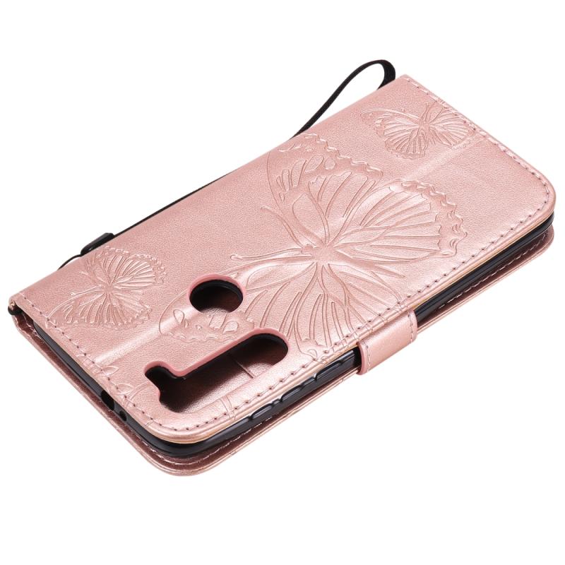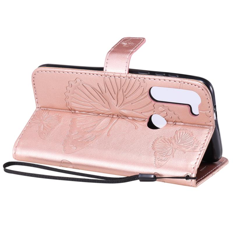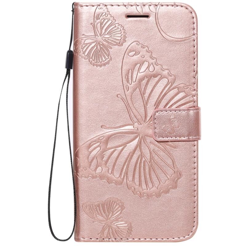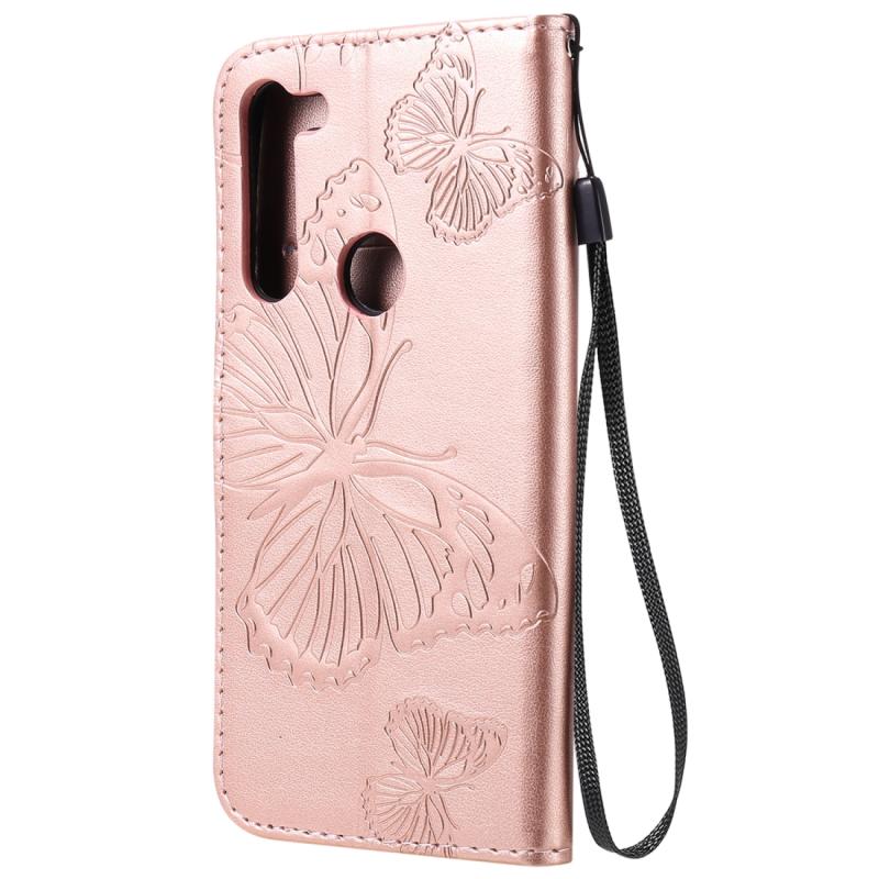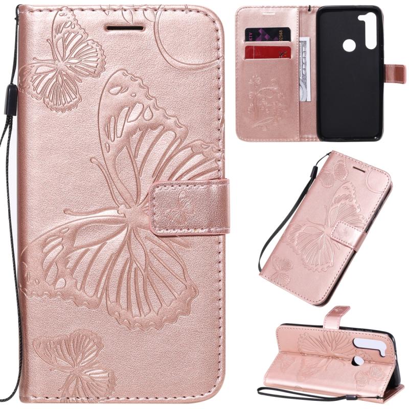 Θήκη δέρματος οριζόντιας αναδίπλωσης για Motorola Moto G8 Power με ανάγλυφο σχέδιο 3D πεταλούδων, με βάση, θήκη καρτών, πορτοφόλι και κορδόνι (Χρυσό Ρόδινο). (Ροζ χρυσός)