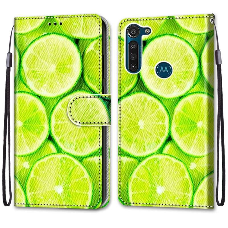 Θήκη για Motorola Moto G8 Power με πολύχρωμο σχέδιο, υφή σταυρού, οριζόντιο άνοιγμα, από δερματίνη PU με βάση στήριξης, θήκες για κάρτες, πορτοφόλι & λουρί (Πράσινο Λεμόνι)