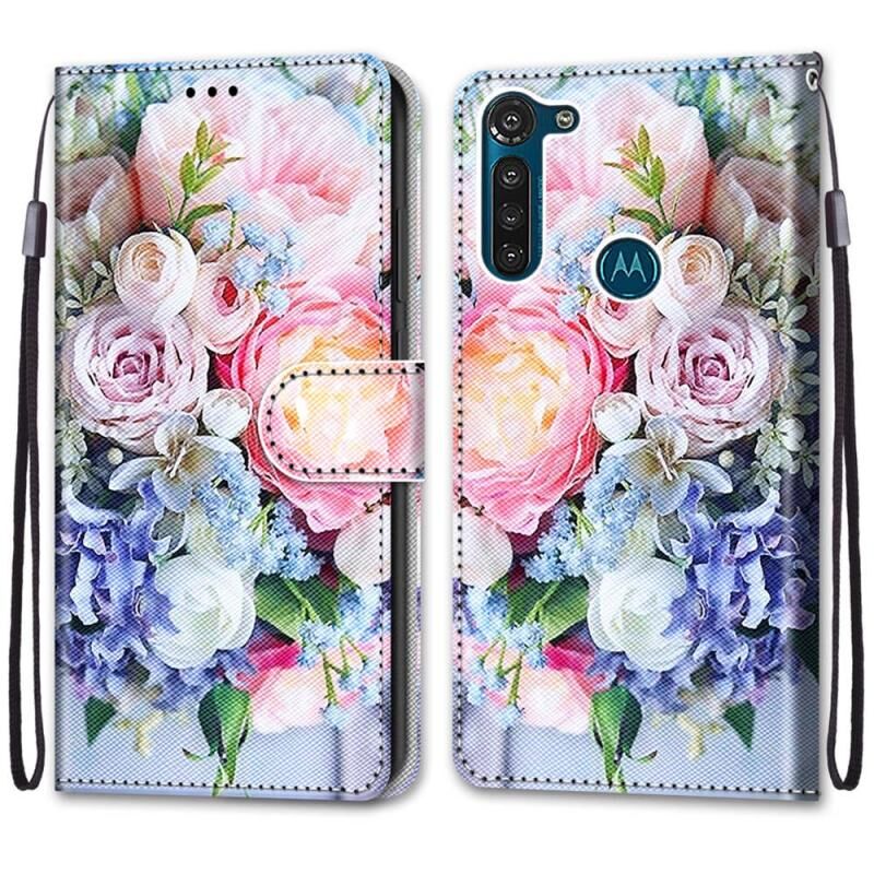 Θήκη για Motorola Moto G8 Power με πολύχρωμο σχέδιο, υφή σταυρού, οριζόντιο άνοιγμα, από δερματίνη PU με βάση στήριξης, θήκες για κάρτες, πορτοφόλι & λουρί (Πράσινο Λεμόνι)