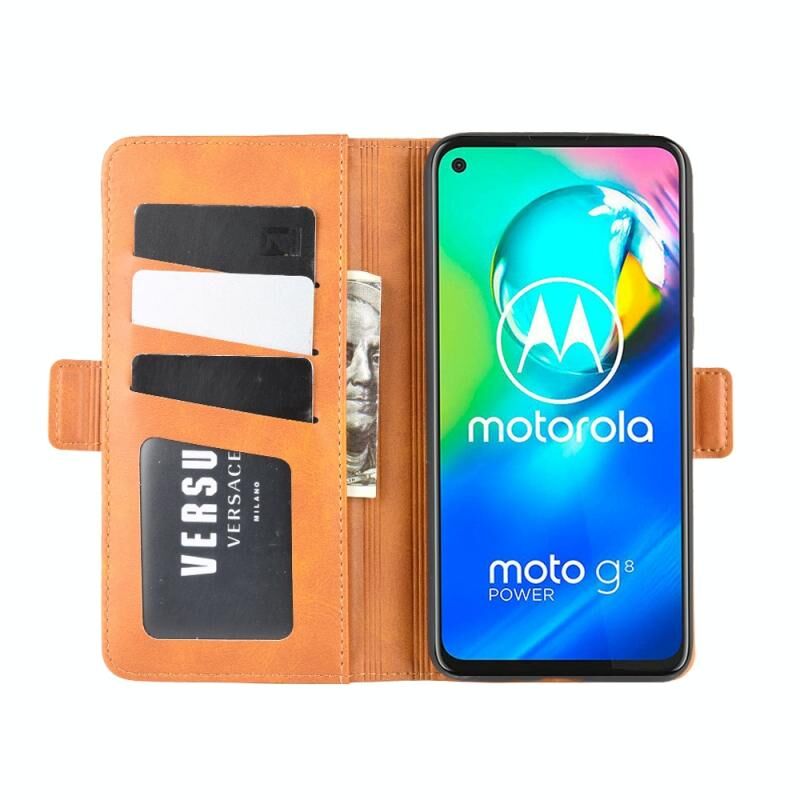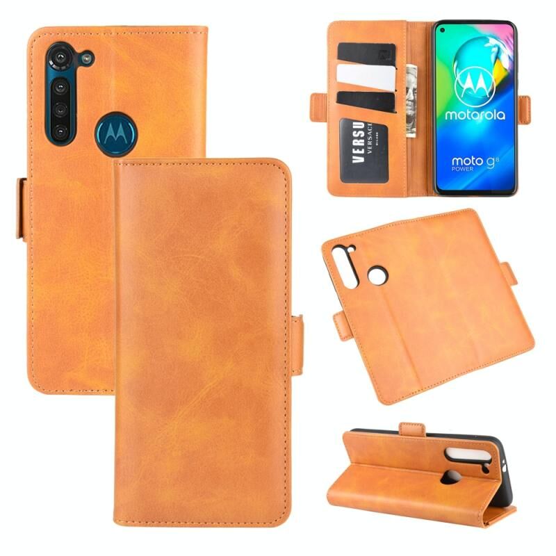 Για Motorola Moto G8 Power Διπλής όψης μαγνητική αγκράφα οριζόντια Flip δερμάτινη θήκη με θήκη & υποδοχές για κάρτες & πορτοφόλι (κίτρινο)