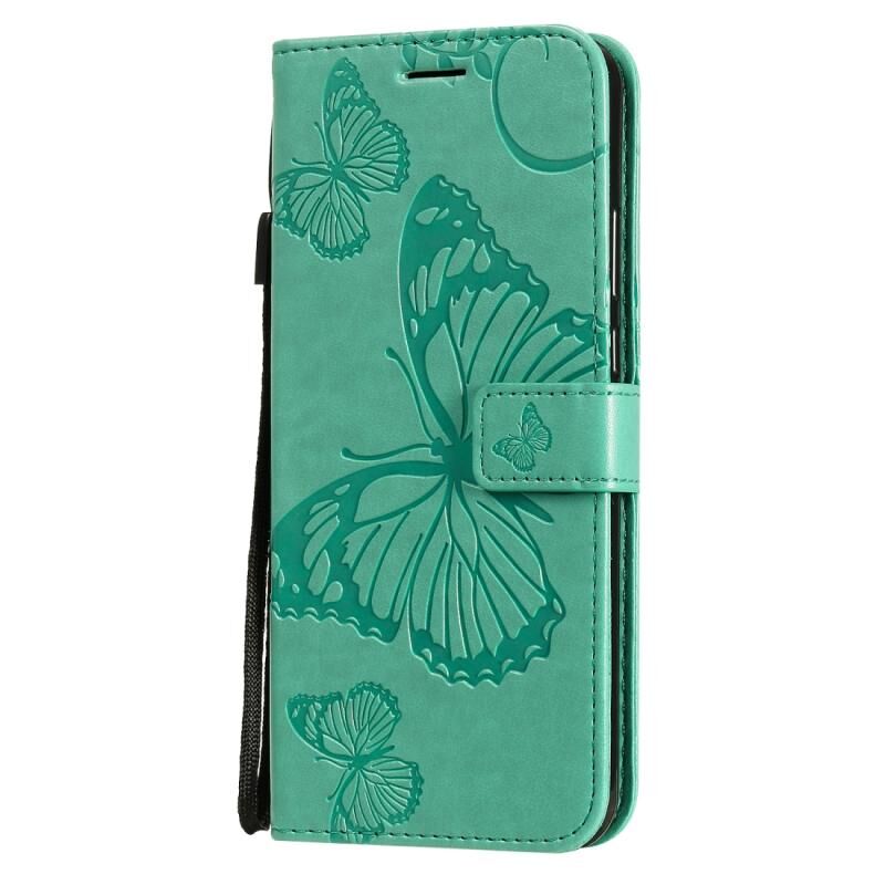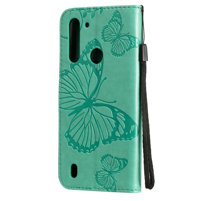 Θήκη δέρματος οριζόντιας αναδίπλωσης με ανάγλυφο σχέδιο 3D πεταλούδων για Motorola Moto G8 Power Lite, με βάση στήριξης, θήκη για κάρτες και πορτοφόλι (Πράσινο)