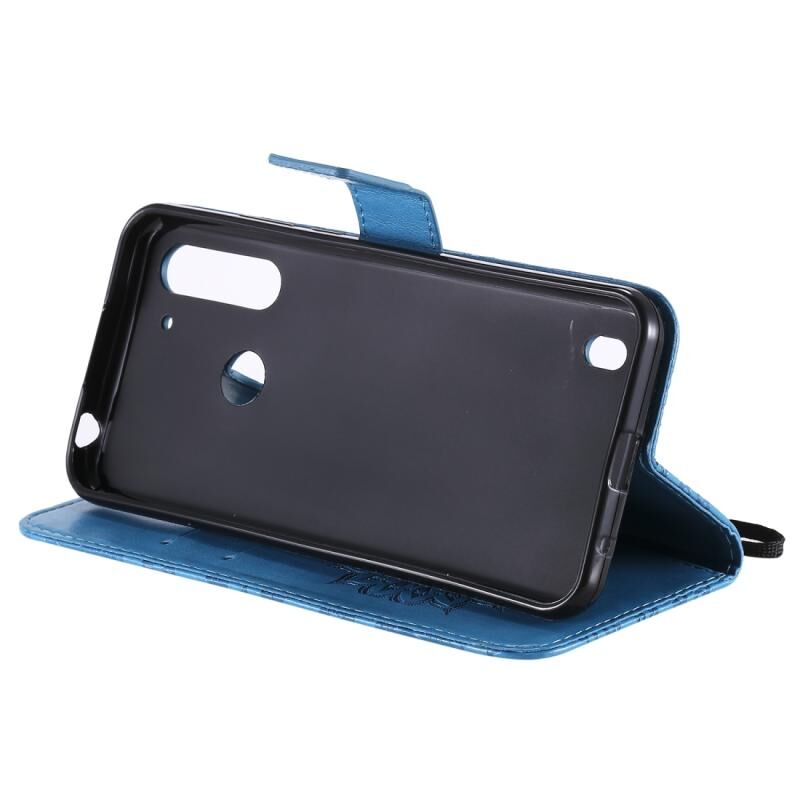 Για Motorola Moto G8 Power Lite Ανάγλυφο ηλιοτρόπιο μοτίβο οριζόντια Flip PU δέρμα υπόθεση με θήκη & υποδοχές για κάρτες & πορτοφόλι & κορδόνι (μπλε)