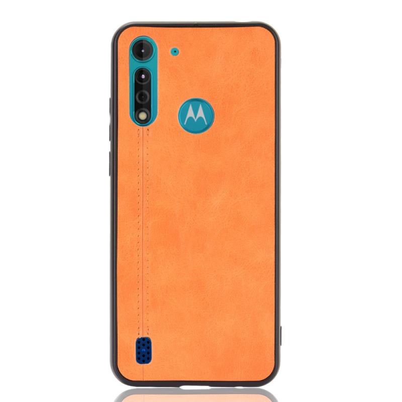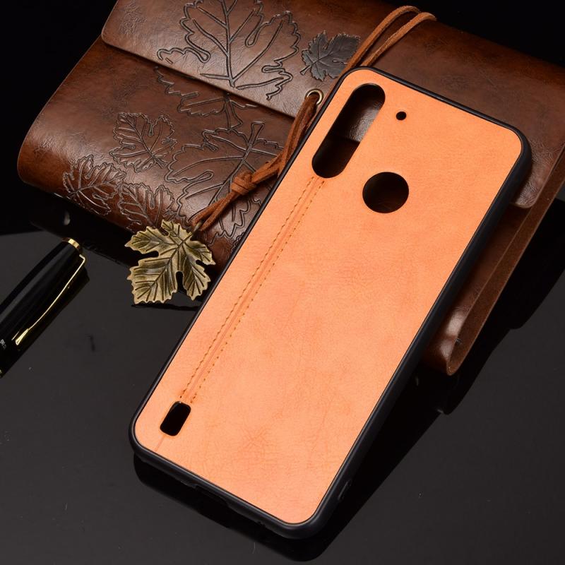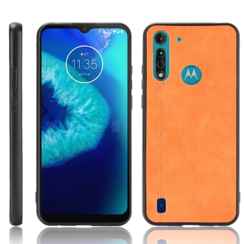 For Motorola Moto G8 Power Lite Shockproof Sewing Cow Pattern Skin PC + PU + TPU Case(Orange)