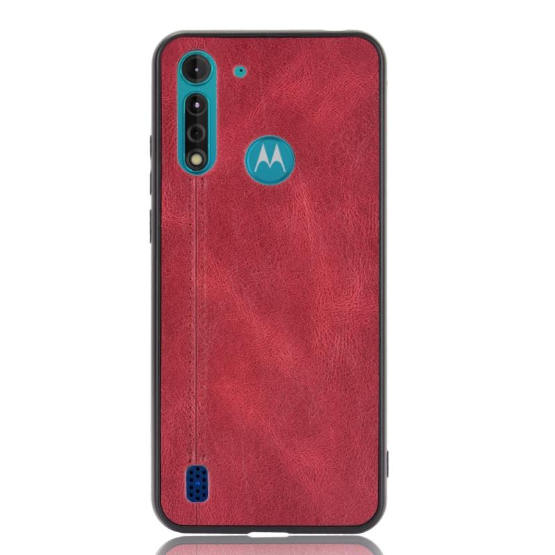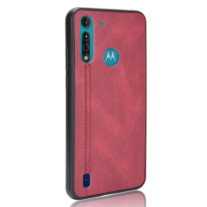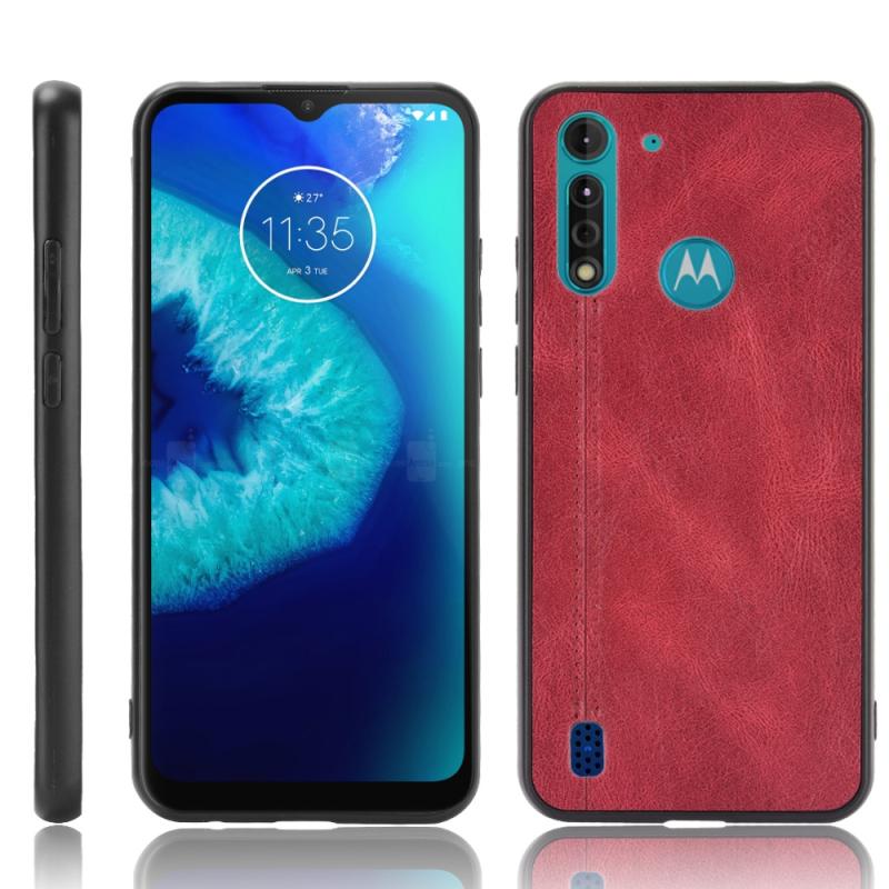 For Motorola Moto G8 Power Lite Shockproof Sewing Cow Pattern Skin PC + PU + TPU Case(Red)
