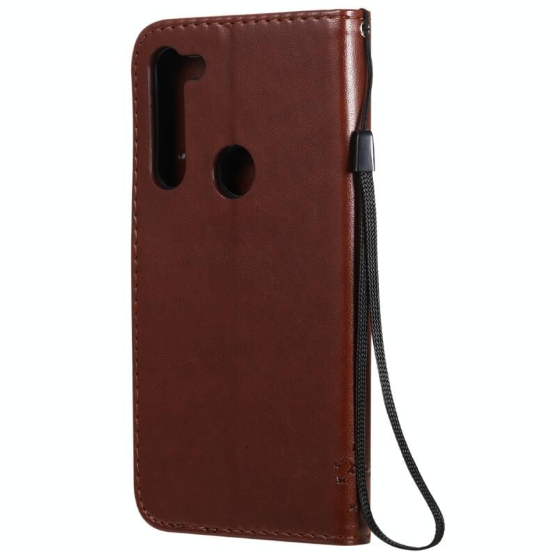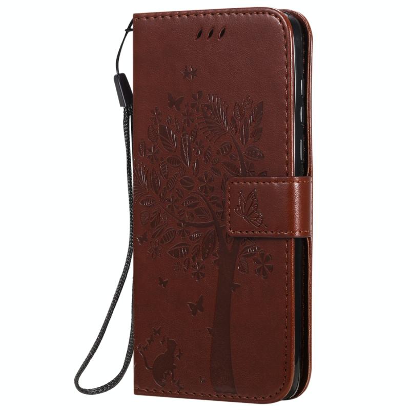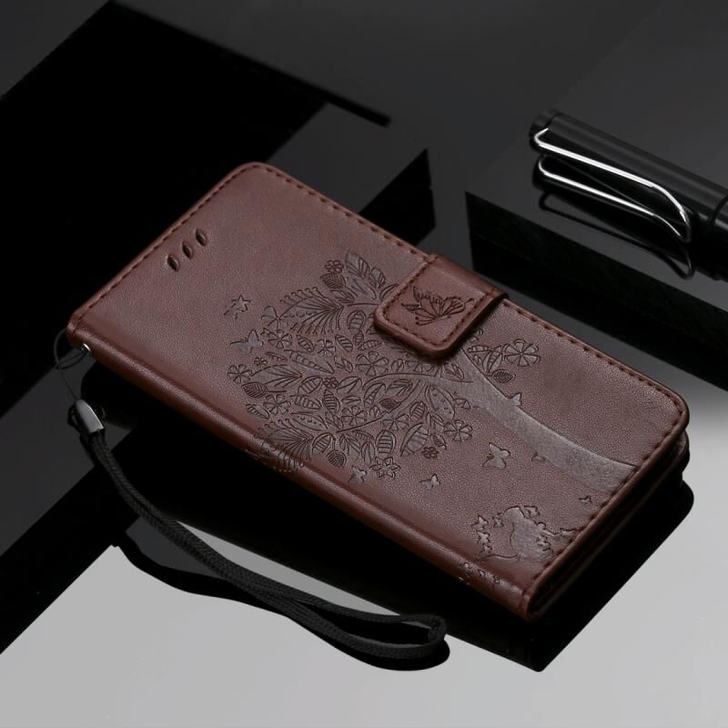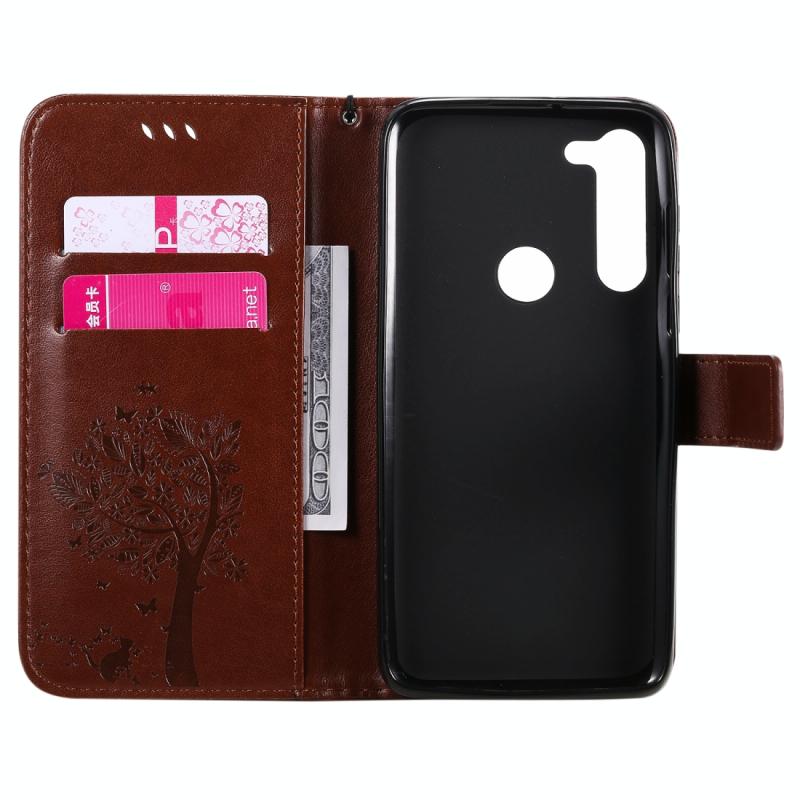 Θήκη δέρματος οριζόντιας αναδίπλωσης για Motorola Moto G8 Power με ανάγλυφο σχέδιο δέντρου & γάτας, με βάση στήριξης & θήκες καρτών & πορτοφόλι & κορδόνι (Καφέ)