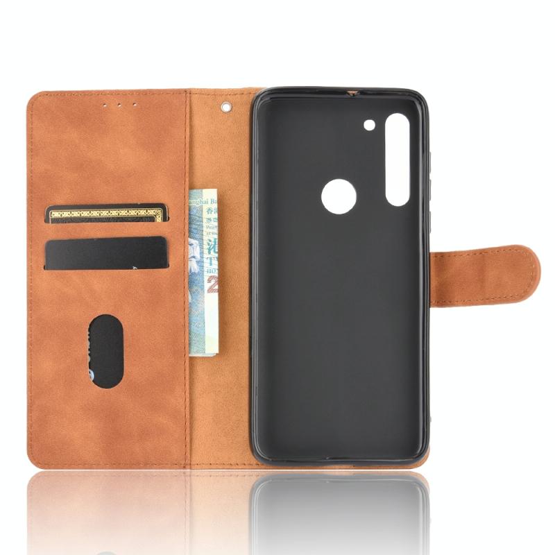 For Motorola Moto G8 Solid Color Skin Feel Magnetic Buckle Horizontal Flip Calf Texture PU Leather Case with Holder & Card Slots & Wallet(Brown)