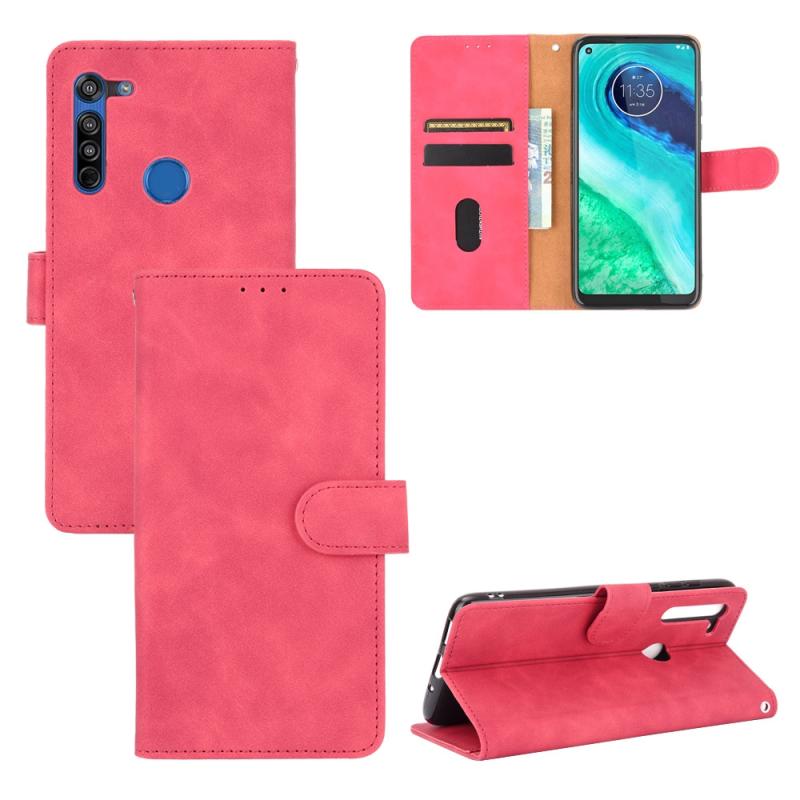 For Motorola Moto G8 Solid Color Skin Feel Magnetic Buckle Horizontal Flip Calf Texture PU Leather Case with Holder & Card Slots & Wallet(Rose Red)