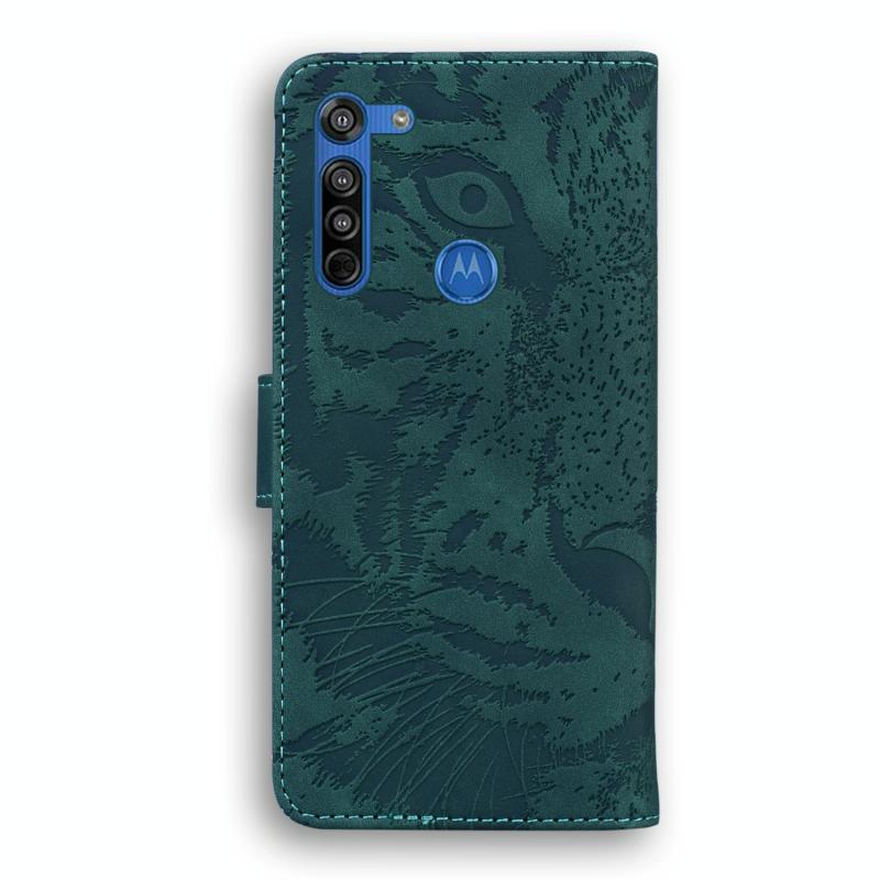 For Motorola Moto G8 Tiger Embossing Pattern Horizontal Flip Leather Case with Holder & Card Slots & Wallet(Green)