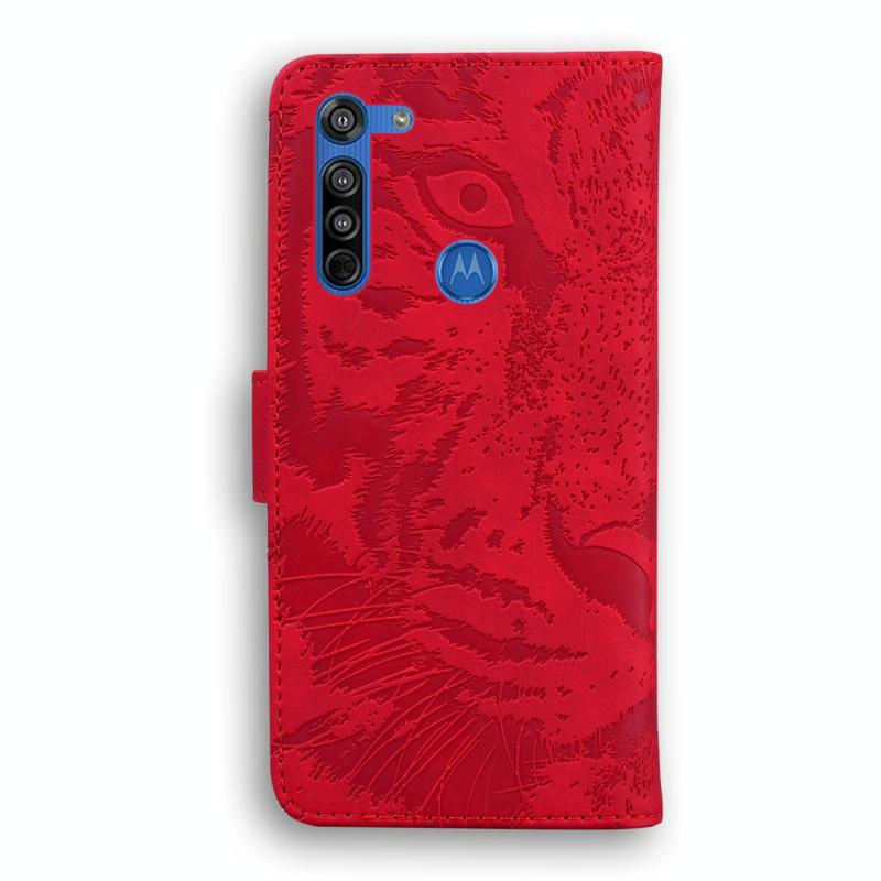 For Motorola Moto G8 Tiger Embossing Pattern Horizontal Flip Leather Case with Holder & Card Slots & Wallet(Red)