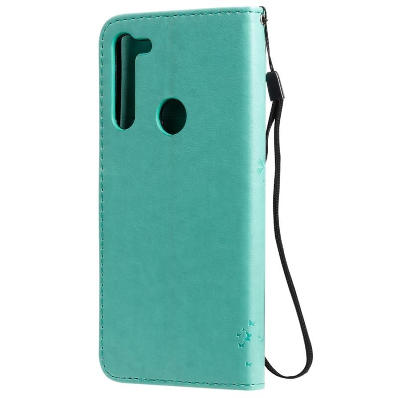 Θήκη για Motorola Moto G8 με σχέδιο Δέντρου & Γάτας, εκτυπωμένη με θερμοτύπηση, οριζόντια αναδιπλούμενη από δερματίνη PU με βάση στήριξης & θήκες για κάρτες & πορτοφόλι & κορδόνι (πράσινο)
