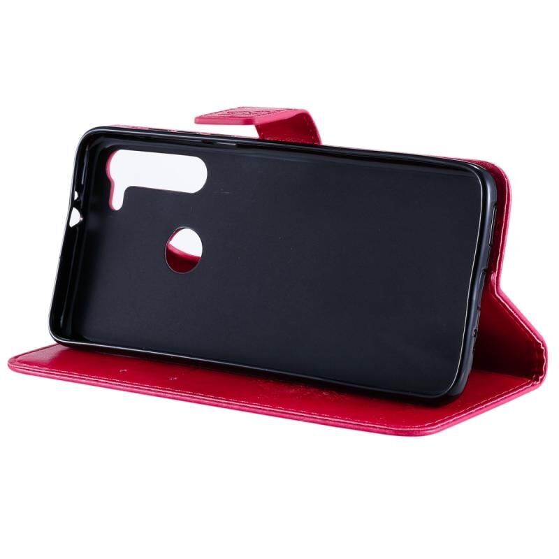 Θήκη για Motorola Moto G8 με σχέδιο Δέντρου & Γάτας, εκτυπωμένη με θερμοτύπωση, οριζόντια αναδιπλούμενη από δερματίνη PU με βάση στήριξης & θήκες για κάρτες & πορτοφόλι & κορδόνι (Ροζέ κόκκινο)
