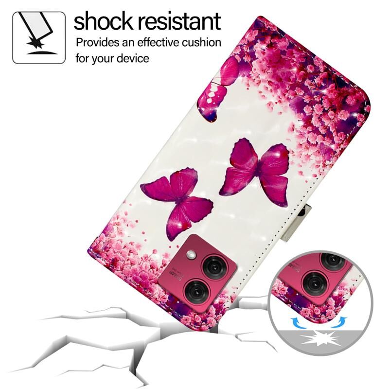 Θήκη τηλεφώνου δερμάτινη με οριζόντιο άνοιγμα και τρισδιάστατη ζωγραφική για Motorola Moto G84 (Ροζ Πεταλούδα)