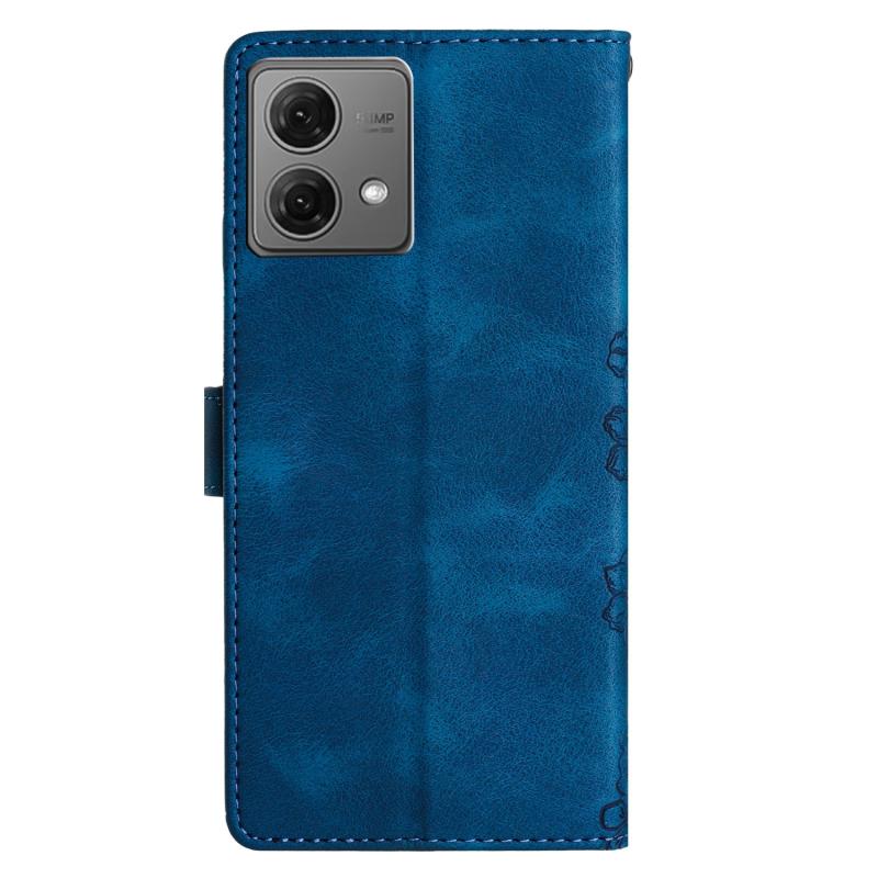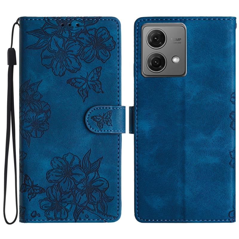 For Motorola Moto G84 5G Cherry Blossom Butterfly Skin Feel Embossed PU Phone Case(Blue)