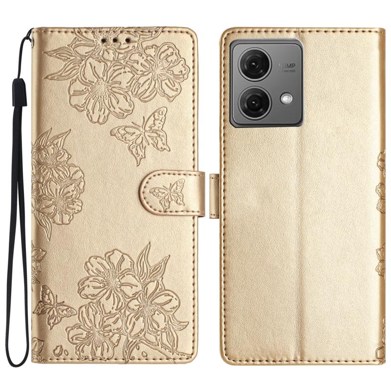 For Motorola Moto G84 5G Cherry Blossom Butterfly Skin Feel Embossed PU Phone Case(Gold)
