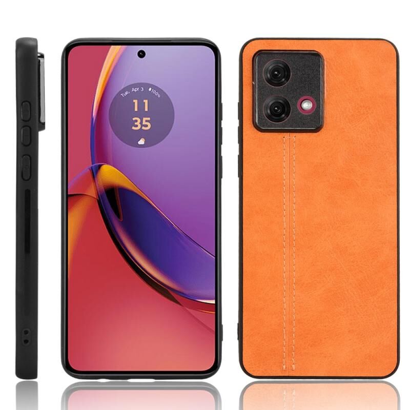 Για Motorola Moto G84 5G Αγελάδα μοτίβο ραπτικής πίσω κάλυμμα τηλέφωνο υπόθεση (πορτοκαλί)