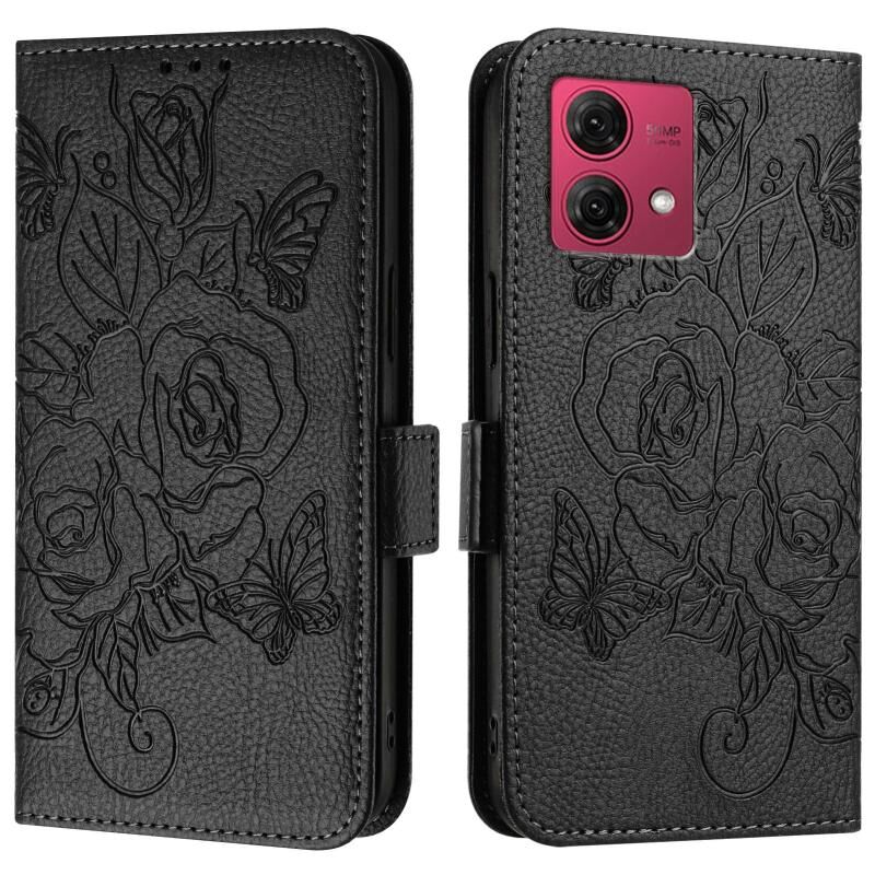 Για Motorola Moto G84 5G ανάγλυφο Rose RFID Anti-theft Δερμάτινη θήκη τηλεφώνου (Μαύρο)