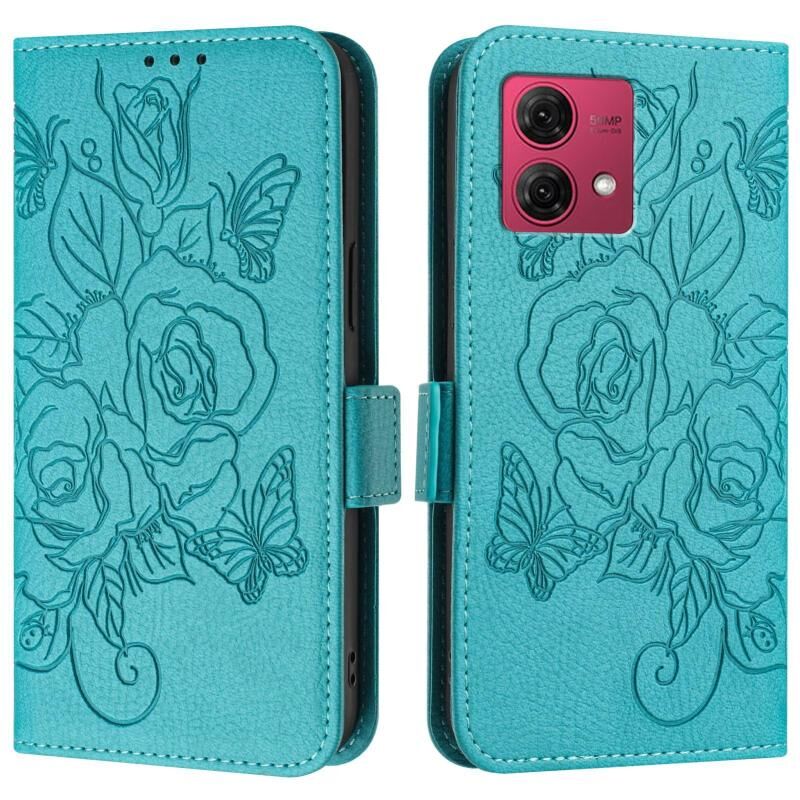 Για Motorola Moto G84 5G ανάγλυφο Rose RFID Anti-theft Δερμάτινη θήκη τηλεφώνου (γαλάζιο)