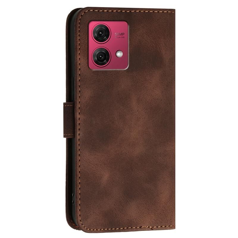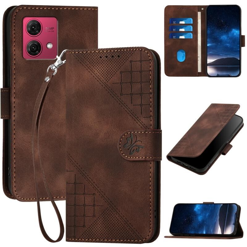 Θήκη κινητού τηλεφώνου δερμάτινη με ανάγλυφο σχέδιο πεταλούδας σε πλέγμα για Motorola Moto G84 5G με κορδόνι (Καφέ)