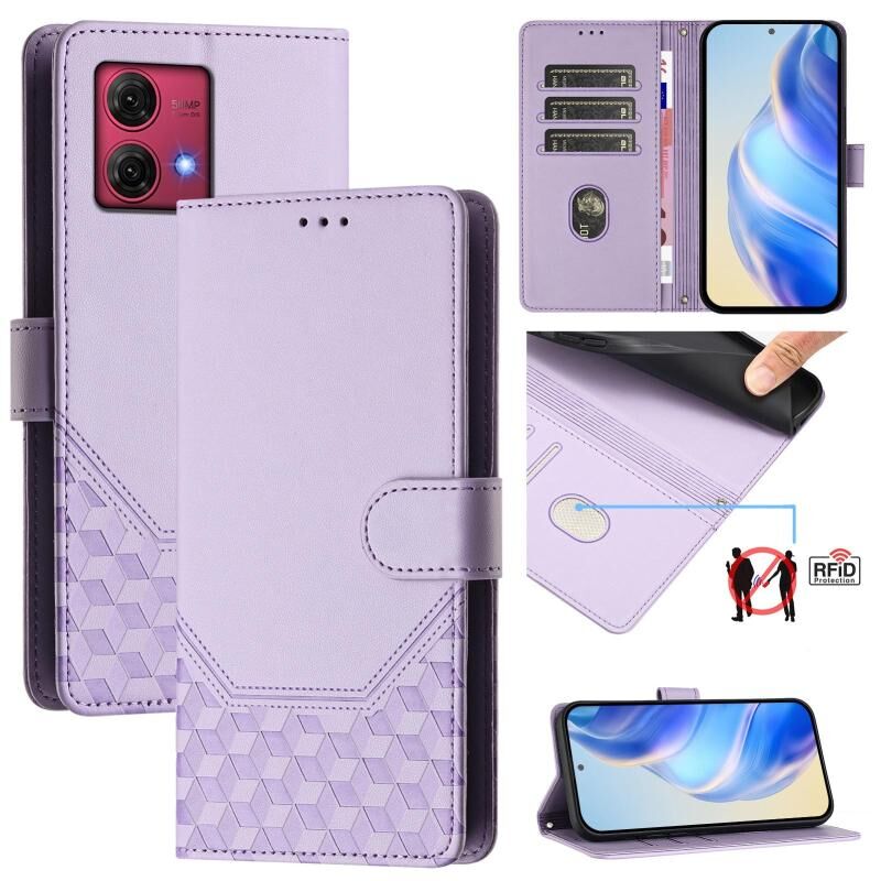 Για Motorola Moto G84 5G Honeycomb ανάγλυφη RFID δερμάτινη θήκη τηλεφώνου (ανοιχτό μοβ)
