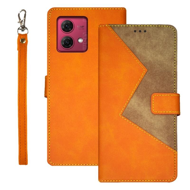 Για Motorola Moto G84 5G idewei Δερμάτινη Θήκη Τηλεφώνου Διχρωμίας (Μπλε) (Πορτοκαλί)