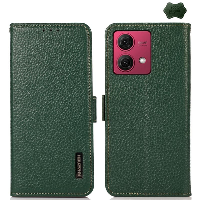 Θήκη τηλεφώνου Motorola Moto G84 5G KHAZNEH με μαγνητικό κλείσιμο, γνήσιο δέρμα Litchi, RFID (Μαύρο)