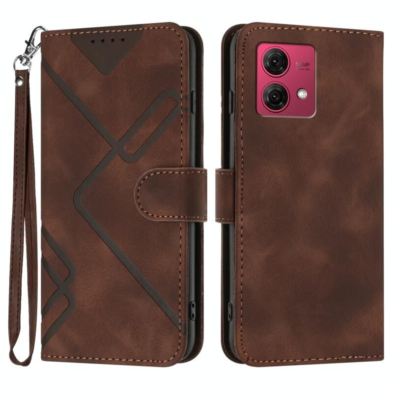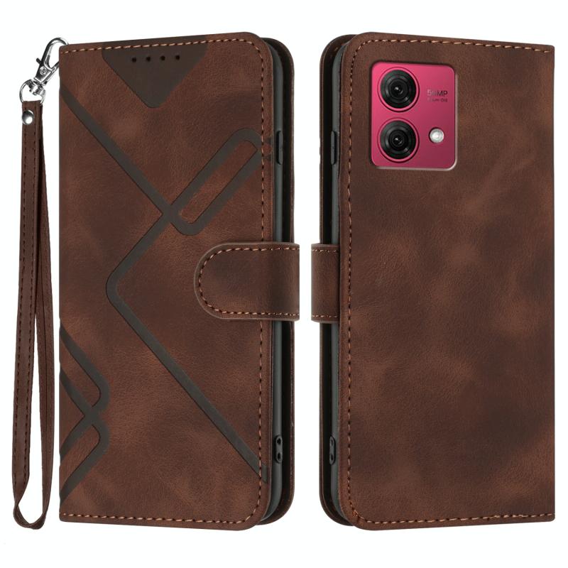 Θήκη κινητού τηλεφώνου από δέρμα με υφή και μοτίβο γραμμών για Motorola Moto G84 5G (Καφέ)