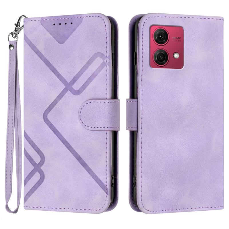 Θήκη κινητού τηλεφώνου Motorola Moto G84 5G με υφή δέρματος και μοτίβο γραμμών (ανοιχτό μωβ)