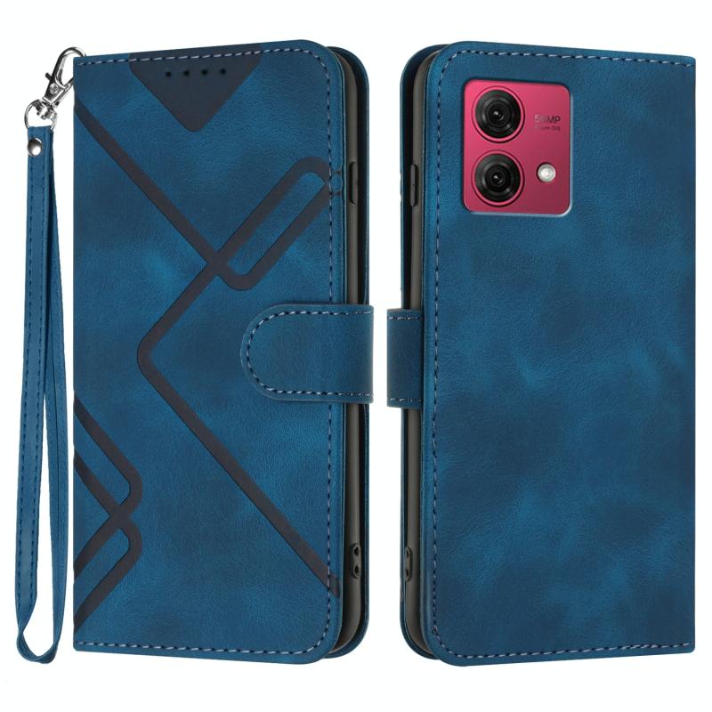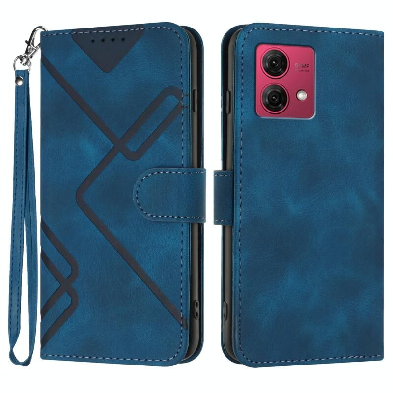 Θήκη κινητού τηλεφώνου Motorola Moto G84 5G με υφή δέρματος και μοτίβο γραμμών (Βασιλικό μπλε)