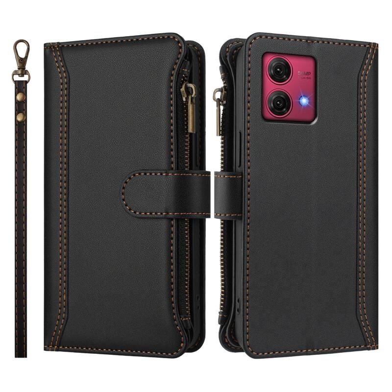 For Motorola Moto G84 5G Magnetic Closure 9 Card Slots Zipper Leather Case with Hand Strap(Black)