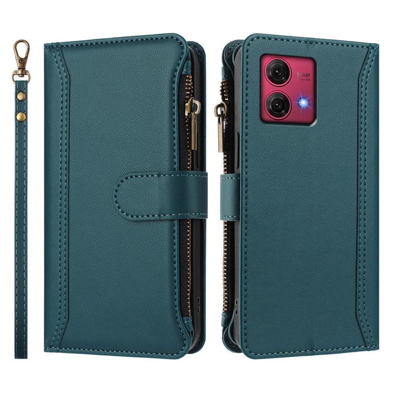 For Motorola Moto G84 5G Magnetic Closure 9 Card Slots Zipper Leather Case with Hand Strap(Dark Green)