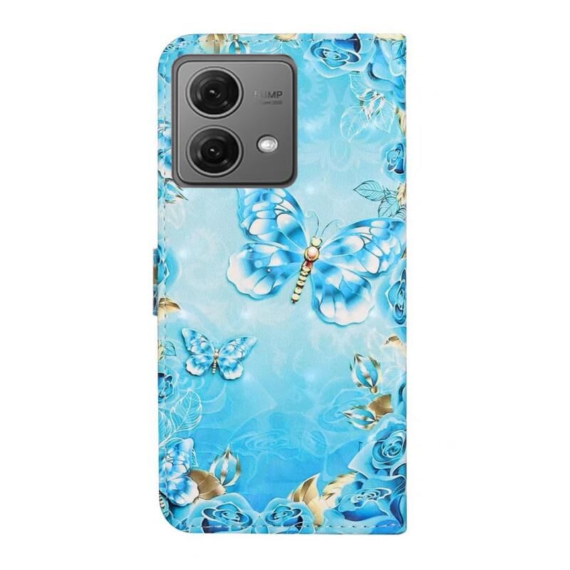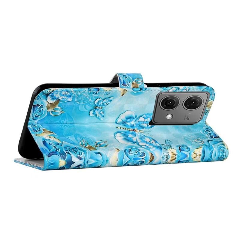Θήκη τηλεφώνου δερμάτινη με ανάγλυφο σχέδιο λαδιού και 3D σχέδιο για Motorola Moto G84 5G (Μπλε Πεταλούδες)