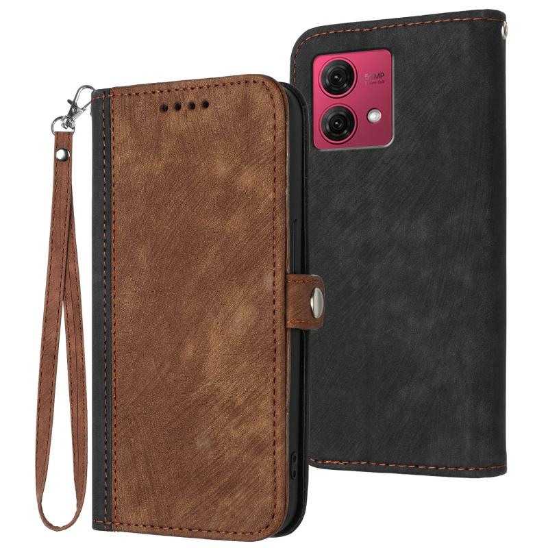 For Motorola Moto G84 5G Side Buckle Double Fold Hand Strap Leather Phone Case(Brown)