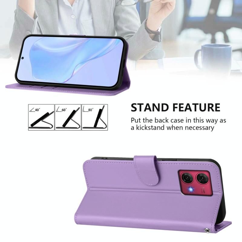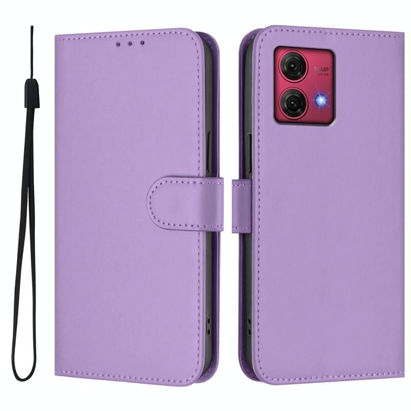 Για Motorola Moto G84 5G Skin Feel Solid Color Δερμάτινη θήκη τηλεφώνου με κορδόνι (μωβ λεβάντα)