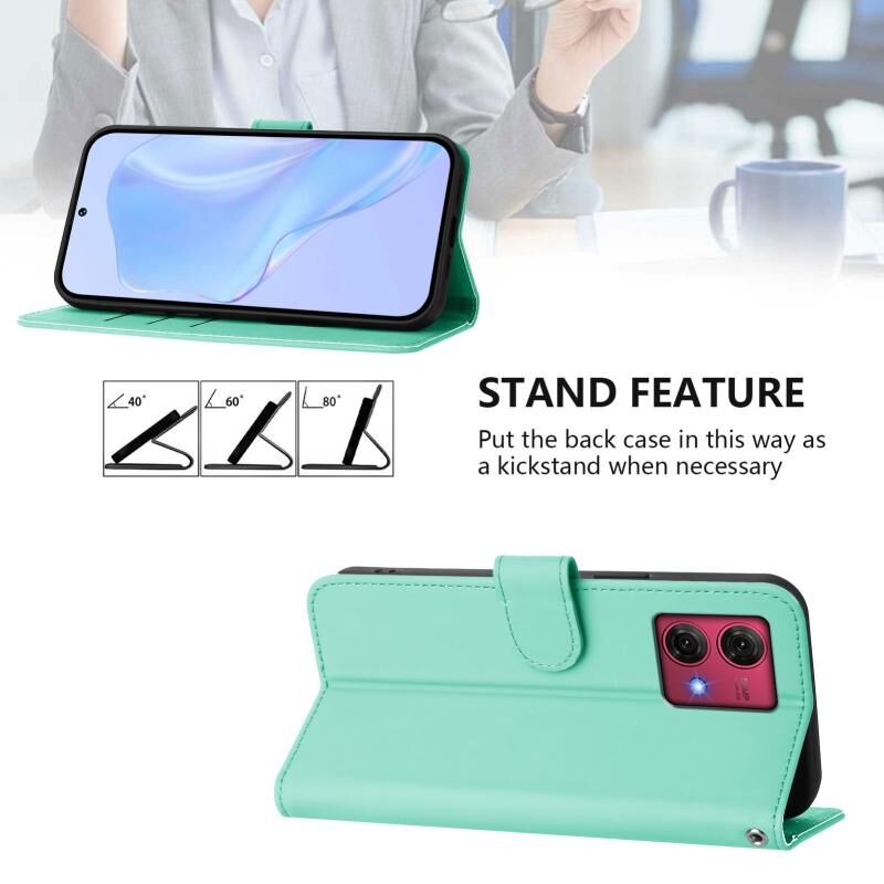 Για Motorola Moto G84 5G Skin Feel Solid Color Leather Phone Case με κορδόνι (πράσινο χρώμα)