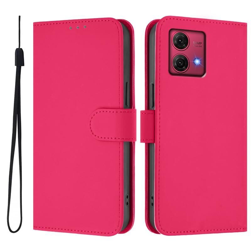 Για Motorola Moto G84 5G Skin Feel Solid Color Leather Phone Case με κορδόνι (Rose Red)